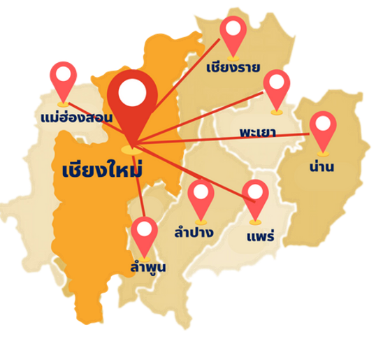 พื้นที่เป้าหมาย ภาคเหนือตอนบน 8 จังหวัด ดังนี้ แม่ฮ่องสอน เชียงราย เชียงใหม่ พะเยา น่าน ลำพูน ลำปาง แพร่